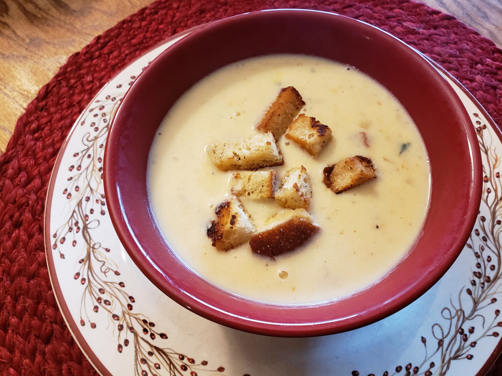 I could have made the old standard, but went out looking for something that might give me soup a little extra oomph. I found a good recipe on Taste of Home that provided the base. The best part of the soup were the homemade sourdough croutons I made to add to the top. I see these taking on a recipe life of their own in the future.
