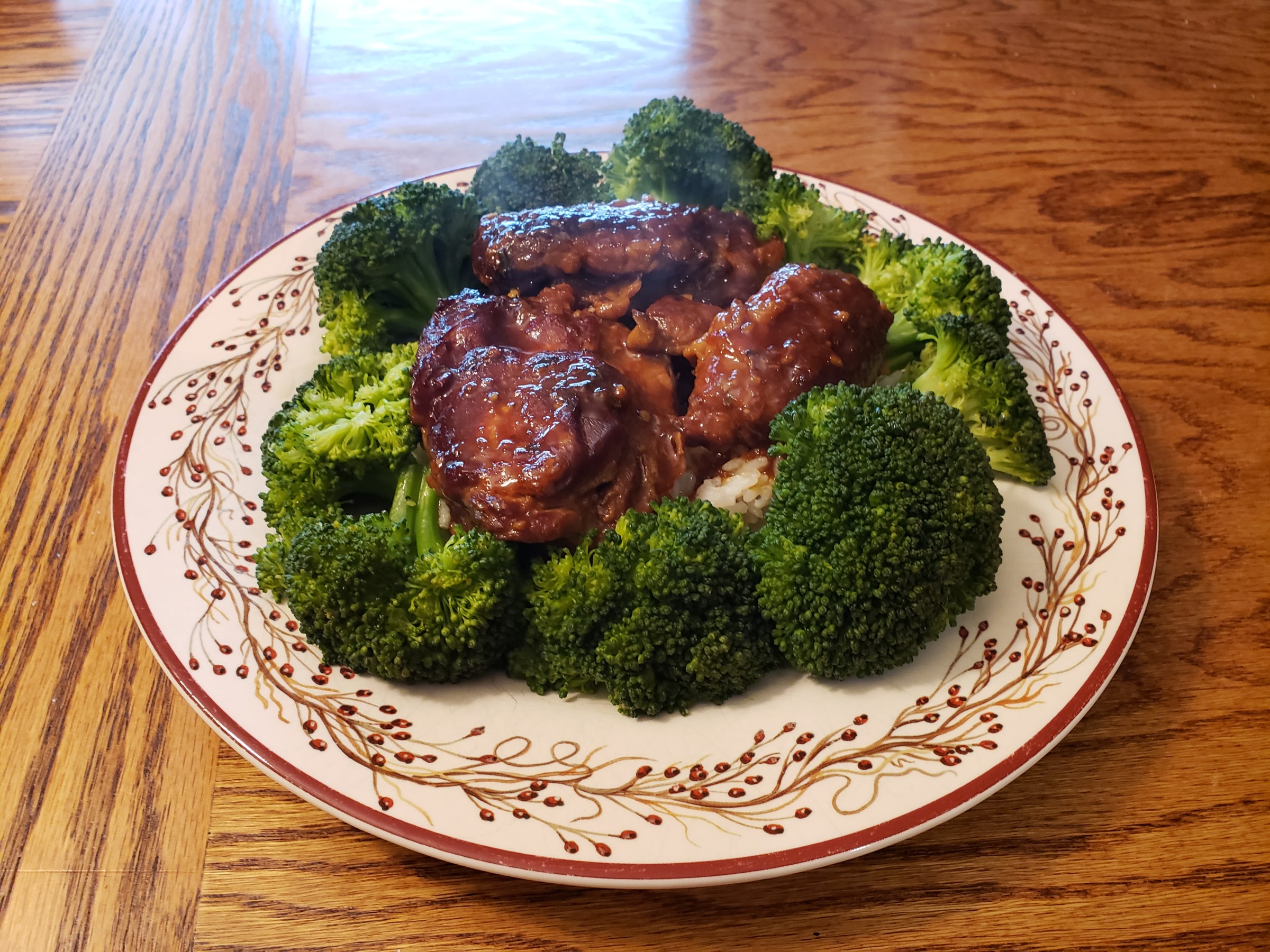 4 Skinless, boneless chicken thighs1/2 cup soy sauce1/2 cup ketchup1/3 cup honey3 cloves garlic, minced1 teaspoon dried basil Lay chicken thighs in the bottom of a slow cooker. Whisk together the remaining ingredients; pour over the chicken. Cook on Low for 6 hours. Recipe from allrecipes.com Sinfully easy and inexpensive. But add a little Basmati …